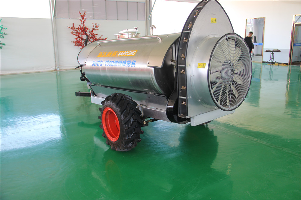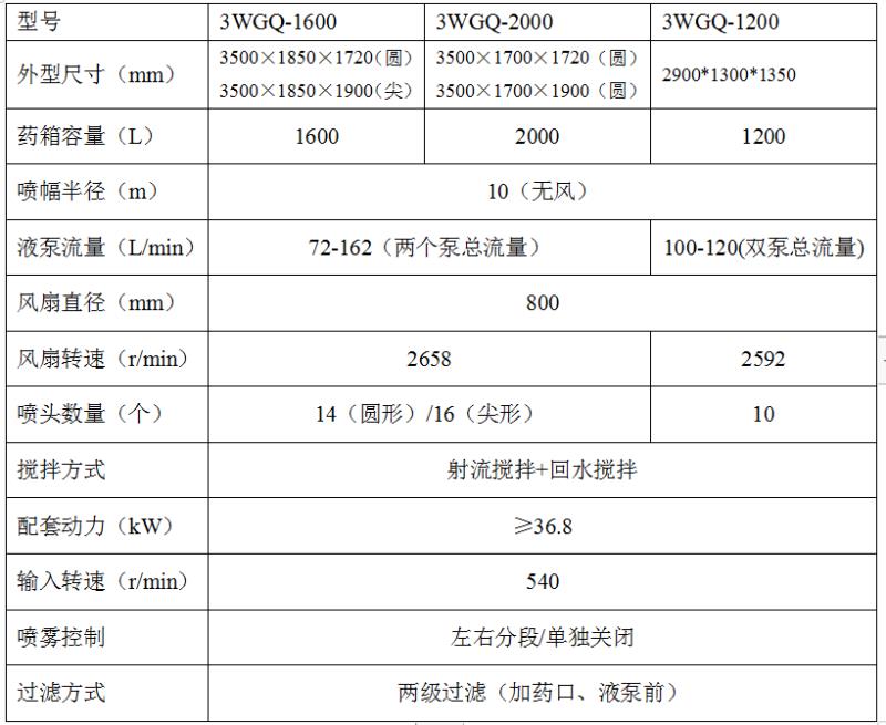 可與40-100馬力拖拉機配套,后牽引式作業(yè);采用高強度耐腐蝕不銹鋼藥箱,采用進口高強銅制噴嘴內(nèi)置耐磨陶瓷芯片,噴射角度可微調(diào),噴嘴孔徑可快速切換,并配備防滴閥;采用先進射流攪拌器作為藥箱的混藥動力,能夠保證工作中藥液不發(fā)生沉淀,對粉劑和低溶解度農(nóng)藥有較強的適用性;強力風(fēng)送式結(jié)構(gòu)配以意大利進口大排量隔膜泵、雙速變速箱,噴灑穿透性較強,適合各種種植密度的作業(yè),有效保證葉面和葉背噴灑效果相同。